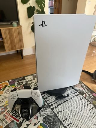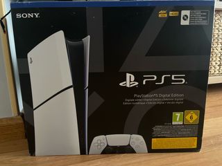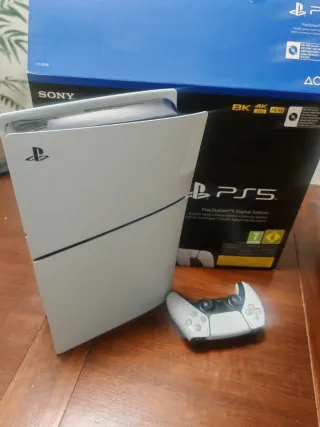 PlayStation 5 Slim Digital. Comprada en noviembre de 2025. Apenas unas partidas de uso, vendo por no usar. Se entrega con factura de compra y caja con todos los accesorios originales - Incluye mando DualSense. - Soporta 4K y HDR. - 825GB de almacenamiento. - Mantiene la Garantía. - Recibo de compra. - Se vende por poco uso.