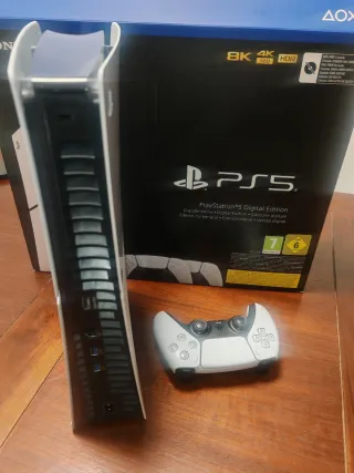 Consola PlayStation 5 Digital Edition en perfecto estado Incluye mando, soporte, cables y caja Está en perfecto estado y lista para usar
