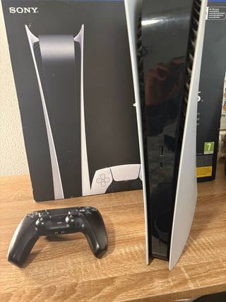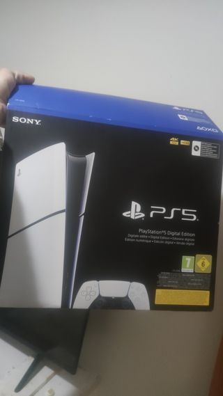 Consola PlayStation 5 PS5 Digital edition en su caja sin abrir nueva. Comprada el 7/1/2026 era para regalo de reyes llegó tarde. Envío/Lleida📦 -825 GB SSD ultrarrápido -Resolución hasta 4K con HDR -Ray Tracing (gráficos realistas) -Cargas casi instantáneas -Audio 3D inmersivo -Compatible con juegos de PS4 (digital) 🎮 Incluye: -PlayStation 5 Digital Edition -Mando inalámbrico DualSense -Base -Cables (HDMI, alimentación y USB) -Documentación original