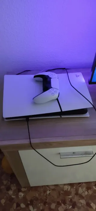 Consola PlayStation 5 Slim Digital en color blanco y negro. La vendo porque no me queda tiempo para utilizarla, viene con sus cables y un mando pero sin caja