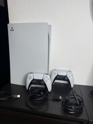 Consola Playstation 5 Edición Digital en perfecto estado, con muy poco uso y con dos mandos DualSense. - Un mando está sin usar. - Incluye todos los cables necesarios.