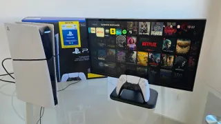 Vendo PS5 por falta de uso En perfecto estado Siempre a sido usada tumbada,no tendrá problemas de pasta térmica No tiene ni un solo fallo El monitor se ve fenomenal El mando funciona al 100x100 no tiene ni una caida Tambien vendo cascos inalámbricos logitech y silla gamer (precio aparte)