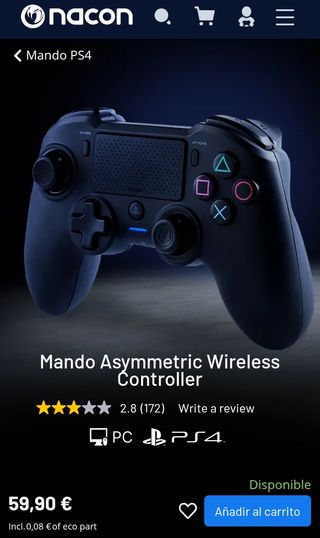 Nacon Asymmetric es un mando inalámbrico asimétrico para una forma alternativa de jugar en PS4.2 motores de vibración y panel táctil. Tiempo de juego: hasta 7 horas. Distancia operativa: hasta 7 metros. Indicador de nivel de batería. Conector para auriculares de 3,5 mm. El receptor Bluetooth® USB permite jugar, y usar las funciones de audio y chat del mando de forma inalámbrica. Incluye cable de carga Tipo de dispositivo: Gamepad Tecnología de control para juegos: Analógico/Digital Plataformas de juego soportadas: PC,PlayStation 4 Juegos de llaves de control de función: Options,Share Vibración por reflejo: Si Joystick analógico:...
