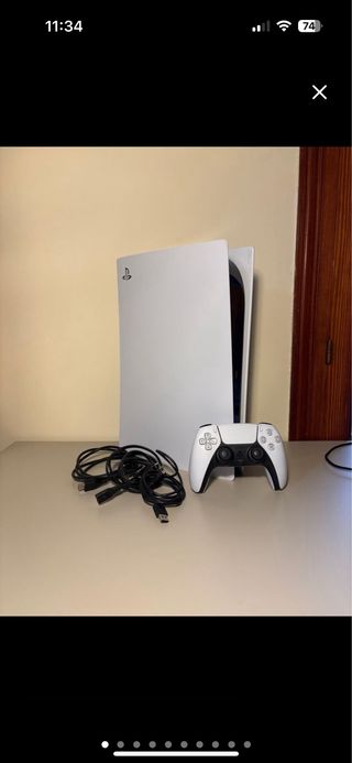 PlayStation 5 Digital Edition en color blanco, en excelentes condiciones. Incluye un mando. - Incluye todos los cables. - Consola en perfecto estado.