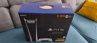 Consola Playstation 5 Digital Edition. - Modelo: PS5 Digital Edition. - Marca: Sony. - Color: Blanco. - Mando oficial negro Buen estado, ligeras marcas de uso en un lado de la carcasa pero perfecto funcionamiento tanto mando como consola. Con su caja y embalajes originales perfecta para regalar en navidad o en reyes. Se vende o cambia por modelo con disco Vendedor serio.