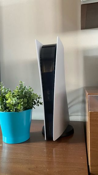 PlayStation 5 Edición Digital en perfecto estado. Incluye consola, mando y soporte. - Consola prácticamente nueva. - Mando DualSense en excelentes condiciones. - Soporte para mando incluido. - Edición Digital, sin lector de discos.