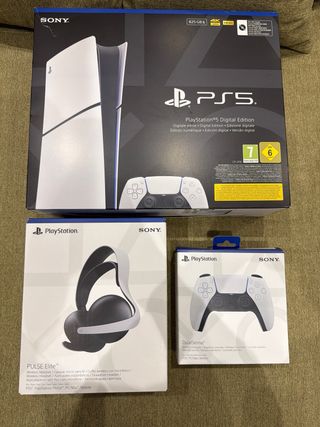 Consola PlayStation 5 Edición Digital con accesorios. - Incluye mando DualSense - Cascos originales PULSE ELITE - Funda para cascos. - comprado 28-11-25 - usado ni 20 horas cascos usado 4 horas Todo impecable