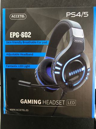 Cascos gaming ACCETEL EPG-602 con luces LED, compatibles con PS4 y PS5. Cuentan con almohadillas transpirables y diadema ajustable. - Almohadillas transpirables. - Diadema ajustable. - Luces LED. - Micrófono integrado.