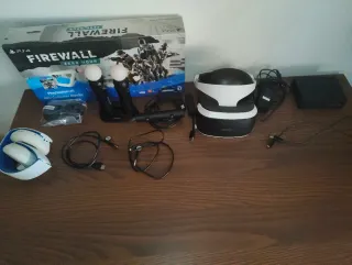 Pack de realidad virtual para PlayStation 4 y PlayStation 5. - Gafas de RV. - Mando Aim Controller. - Mandos ps move - Auriculares. - Cables de conexión, micro usb y adaptador play 5. - Juego Firewall - Cascos play (bastante desgastados)