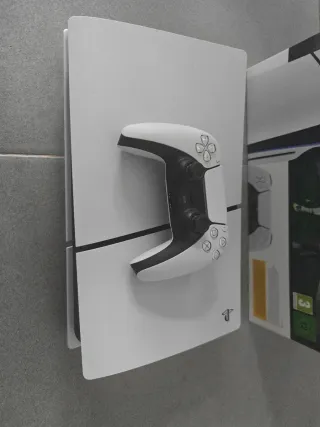 Consola PlayStation 5 Slim. - Modelo Slim de la consola. - No incluye juegos. - Incluye un mando. - Color blanco. Tiene lector de discos y todos los cables de la consola.