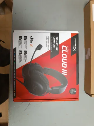 ESTÁ SIN ABRIR, fue un regalo pero ya tengo unos. Auriculares gaming HyperX Cloud III con diseño de alta gama. - Almohadillas de espuma viscoelástica. - Micrófono ultra claro. - Estructura metálica duradera. - Compatible con PC, PS5, PS4, Xbox Series X|S, Xbox One, Nintendo Switch y móvil. - Sonido legendario.