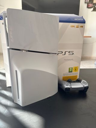 Consola PlayStation 5 Slim en color blanco con 1TB de almacenamiento con caja original. Ha tenido muy poco uso se pueden ver las horas en las imágenes. - Modelo Slim con disco. - Capacidad de 1TB. - Incluyo mando en perfectas condiciones - Incluyo 2 juegos originales - Garantía hasta 04/2026 #ps5 #Sony #play #playstation