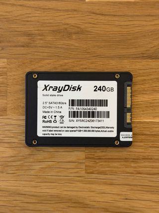 Vendo unidad de estado sólido XrayDisk de 240GB en perfecto estado - Interfaz SATA3 6Gb/s. - Formato 2.5 pulgadas. Ideal para ordenadores de sobremesa, portátiles, video consolas como la ps3, ps4, etc. Entrega en Castellón y alrededores, también hago envíos por correos certificado 24hrs, +8€. NO WALLAPAY TAGS: 500GB SSD, 960GB SSD, 1TB SSD, 2TB SSD, almacenamiento SSD, upgrade portátil, upgrade PC, mejora rendimiento, arranque rápido, carga rápida, compatible portátil, compatible sobremesa, compatible PS4, compatible PS3, clonación disco, instalación Windows, bajo consumo, silencioso, alta velocidad