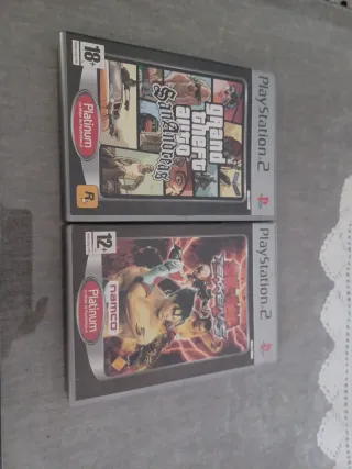 Se venden las cajas y los manuales de dos videojuegos para PlayStation 2. - Grand Theft Auto: San Andreas (Platinum Edition) - Tekken 5 (Platinum Edition)
