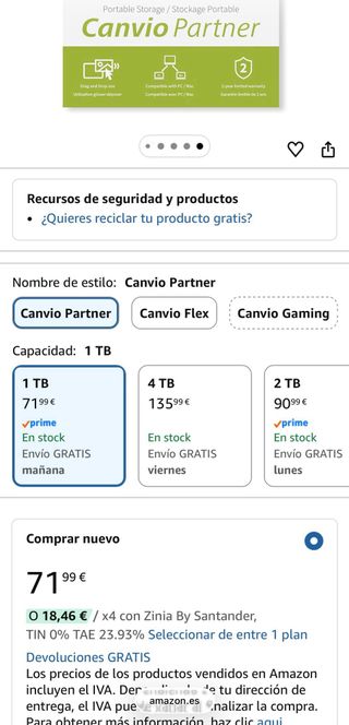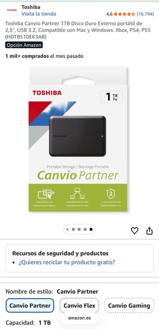 Nuevo sin abrir Disco duro externo portátil Toshiba Canvio Partner de 1TB. - Capacidad: 1 TB - Conexión USB 3.2 - Compatible con Mac y Windows - Ideal para Xbox, PS4, PS5