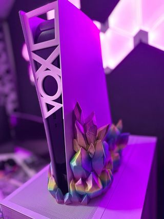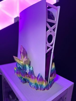 Base decorativa para PlayStation 5 con diseño de cristales iridiscentes. - Diseño único de cristales. - Acabado multicolor. - Soporte para consola PS5. - Disponible en todos los colores