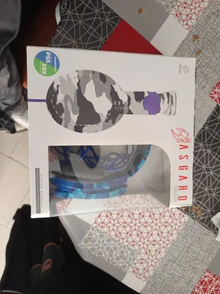 Auriculares gaming Asgard Skadi con un diseño de camuflaje llamativo. Son compatibles con múltiples plataformas. - Diseño de camuflaje gris y morado. - Compatible con PS5, PS4, Xbox Series X|S, Xbox One, Switch y PC/Mac.
