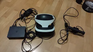 Kit de realidad virtual para PlayStation 4, ideal para sumergirte en tus juegos favoritos. Incluye todos los componentes necesarios para empezar a disfrutar. Se pueden vender cosas por separado, pregunta sin compromiso - Visor de realidad virtual con todos los cables necesarios - Cámara PlayStation. - Dos mandos de movimiento. - 6 juegos ps4: -- Call of Duty: WWII -- FarCry 5 deluxe edition -- Gta V -- Resident Evil VII -- Gran Turismo Sport -- Red Read Redemtion 1 mando ps4