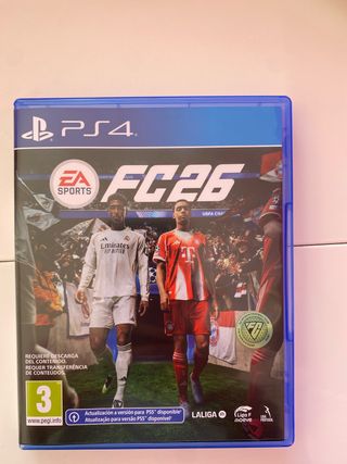 Videojuego FC 26 para PlayStation 4. - Carátula con diseño de fútbol. - Incluye clasificación PEGI 3. - Compatible con actualización a PS5.