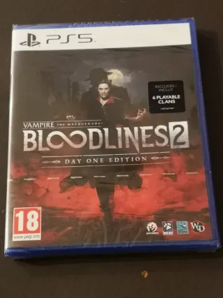 Edición Day One del juego Vampire: The Masquerade - Bloodlines 2 para PlayStation 5. - Incluye 6 clanes jugables. - Clasificación PEGI 18.
