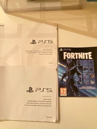 2 Libritos de instrucciones / guías de Playstation 5 + regalo folleto Fortnite. - Guía de inicio rápido (Quick Start Guide) - Guía de seguridad (Safety Guide)