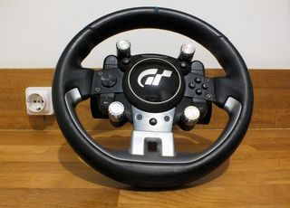 Thrustmaster T-GT II para PlayStation 4, 5 y Pc firmado por Coque Lopez (firma en pegatina que se ha recubierto con film transparente para que no se degrade). · Solo base y aro, no incluye pedalera. · Tambien incluye soporte a mesa, transformador y cableado. · Versión 220-240V. (*Unifico envíos de productos de mi perfil)