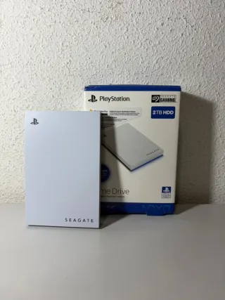 Disco duro externo Seagate Game Drive de 2TB, diseñado para consolas PlayStation. - Capacidad de 2TB. - Color blanco.