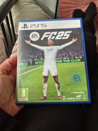 Videojuego FC 25 para PlayStation 5. - Carátula con jugador de fútbol. - Clasificación PEGI 3. - Incluye tecnología HYPERMOTION. - Licencias de LaLiga y Liga F.
