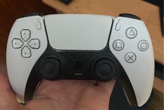 Mando inalámbrico DualSense para PlayStation 5. Es Original, venía con la consola. - Diseño ergonómico en blanco y negro. - Botones de acción con símbolos clásicos. - Sticks analógicos precisos. - Panel táctil central.
