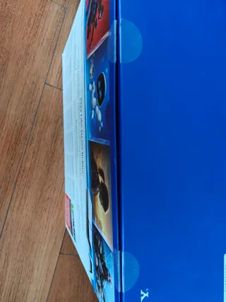 Play 5 + 2 Mandos, el blanco esta desgastado en los joysticks y el de camuflaje esta perfecto pero tiene un poco de drift. La play funciona perfectamente y esta actualizada. No tiene caja pero si que incluye cables y la base para sujetarla.