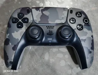 Control para PlayStation 5 con un diseño de camuflaje en tonos grises y negros. - Diseño de camuflaje. - Compatible con PlayStation 5. - Negociable.