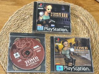 Lote 3 juegos Tom Raider , Lara Croft -Juego de PlayStation Tomb Raider II.( solo disco ) -Tom Raider la revelation finale , libro en mal estado como se aprecia en fotos -Tom Taider III libro en mal estado