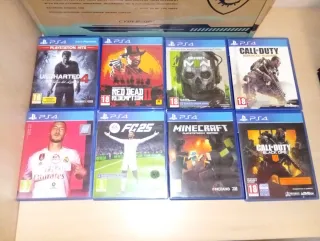 10 euros cada uno, videojuegos para PlayStation 4. Se venden de 2 en 2 - Uncharted 4: A Thief's End - Red Dead Redemption 2 - Call of Duty: Modern Warfare II - Call of Duty: Advanced Warfare - FIFA (FC 25) - Minecraft: PlayStation 4 Edition - Call of Duty: Black Ops