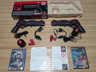 Hola Buenas! Pack de dos pistolas RGT G1 para PlayStation 2 o XBOX, junto con los juegos Time Crisis 2 y Time Crisis 3 para PlayStation 2. -Incluye dos pistolas de luz G1. (Solo una caja). -Incluye los juegos Time Crisis 2 y Time Crisis 3 para play 2. Cds con marcas. -Los juegos incluyen manual. -Compatible con cualquier TV. -Funciona en Play Station 2, en XBOX y G-CON 2 -Compatible con juegos como Cris Zone, House of the Dead 3, Ninja Asault y mas... -La pistola tiene el manual en Castellano y Portugués Estilo de disparo relajado o militar. Importante leer el manual con atención para su instalación y uso. No incluye pilas (AA)
