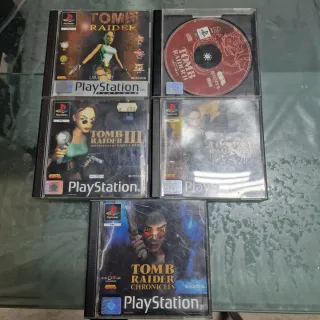 Lote de juegos de Tomb Raider para PlayStation 1. - Tomb Raider - completo con visagra rota - Tomb Raider II - sin portada ni manual y caratula rota - Tomb Raider III: Adventures of Lara Croft - completo caratula con grietas - Tomb Raider IV: The Last Revelation - sin manual y caratula rota - Tomb Raider Chronicles - sin manual y caratula agrietada Discos funcionando y bastante bien