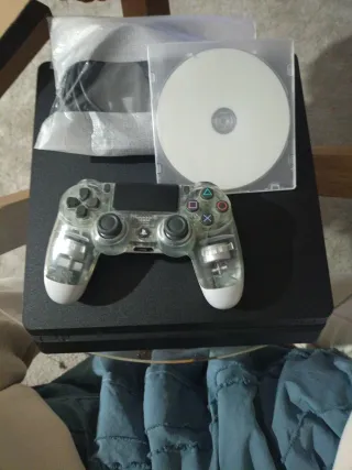 Consola PlayStation 4 Slim 500gb de espacio, en color negro, con mando transparente y disco de jailbreak hasta 12.50 - Versión 12.00 - Incluye disco con jailbreak. - Buena condición.