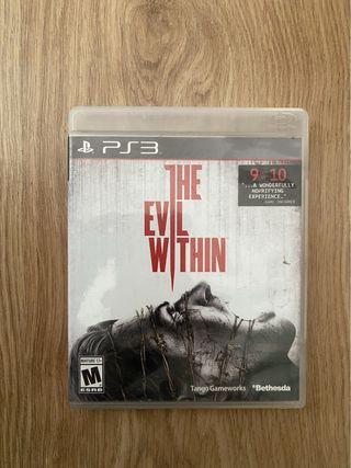Videojuego de terror The Evil Within para PlayStation 3. - Clasificación ESRB: M (Maduro 17+). - Desarrollado por Tango Gameworks y publicado por Bethesda. - Incluye reseña de Game Informer con puntuación de 9/10.