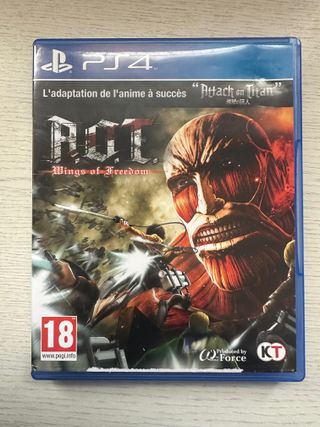 Videojuego de acción para PlayStation 4. - Basado en el exitoso anime Attack on Titan. - Título: Wings of Freedom.