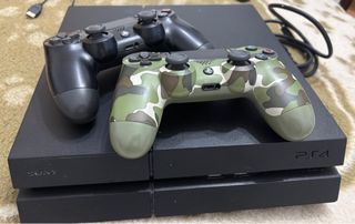 Consola PlayStation 4 en color negro. Incluye dos mandos, uno negro y otro de camuflaje. Noo negociable precio ya fijo no respondo mareantes