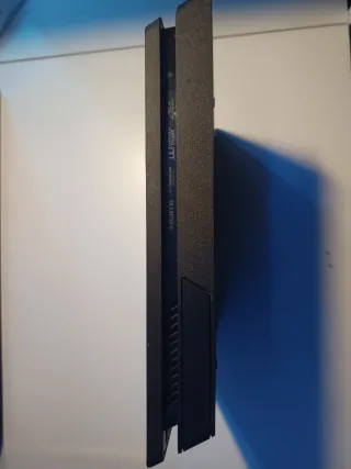 Consola de videojuegos en color negro, modelo PS4. - Incluye base de carga para mandos. - Diseño elegante y moderno. - Soporte para discos - Final 20 *No tiene mando*