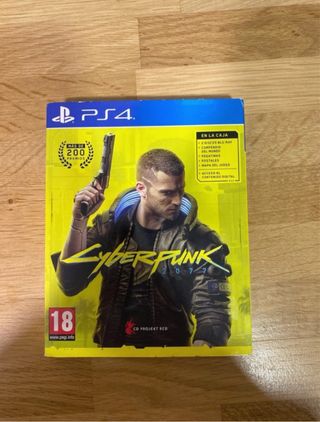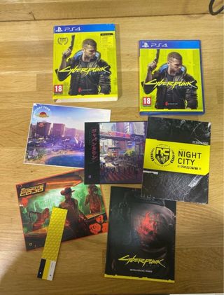 Videojuego Cyberpunk 2077 para PS4. Incluye contenido adicional. - 2 discos Blu-ray - Compendio del mundo - Pegatinas - Postales - Mapa del juego - Acceso a contenido digital