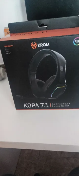 Auriculares gaming KROM Kopa 7.1 con sonido virtual. Funciona perfectamente - Diseño moderno y ergonómico. - Iluminación RGB. - Compatibles con PC, PS4, PS5 y Switch.