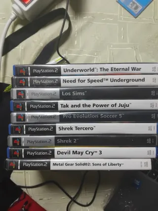Vendo lote de 9 juegos originales de PS2 en buen estado. Incluye títulos clásicos como Metal Gear Solid 2, Devil May Cry 3 y Need for Speed Underground. Hay 2 que no tienen sus instrucciones. Sale más barato comprarlo todo que por separado. Precio no negociable