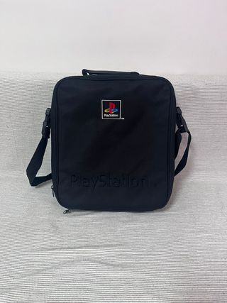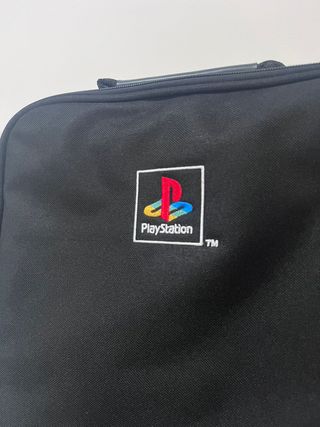 Mochila negra con el logo de PlayStation 1 en buenas condiciones. Medidas: Largo 38 cm x Ancho 34 cm - Diseño clásico de la marca. - Correa ajustable para llevar al hombro. - Asa superior para transporte. - Cierre de cremallera. #PlayStation #PS #PS1 #Mochila #Bag #CarryCase #CarryBag #Funda