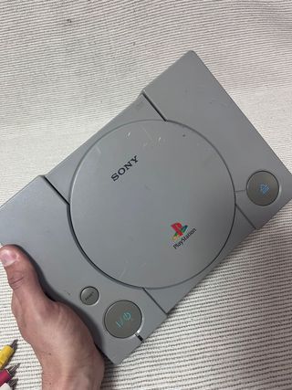 Consola clásica PlayStation 1 en color gris. Incluye cables de conexión AV y de corriente. La consola se encuentra funcionando, se notan marcas en la carcasa y tiene un agujero cruzado en la parte trasera (fotos) supongo que se lo han hecho para colgarla o algo por el estilo y no para abrirla, tambien se siente el movimiento de alguna parte suelta por dentro pequeña que puede ser algun plastico (en mi opinion) #PlayStation #PS #PS1 #Consola #System #PS2 #Sony #Coleccion