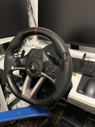 Volante de conducción compatible con PlayStation 4, PC y PlayStation 3. - Diseño ergonómico para un agarre cómodo. - Incorpora botones y levas para una experiencia de juego inmersiva. - Base con sistema de sujeción. - Indicador de centrado en la parte superior del aro.