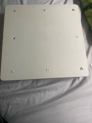 Consola PlayStation 4 en color blanco. - Diseño elegante. - Símbolos de PlayStation grabados en la carcasa.