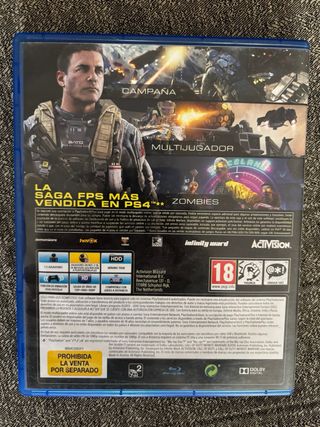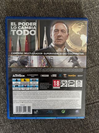Videojuego Call of Duty: Advanced Warfare para PlayStation 4. - Género: FPS (First Person Shooter). - Desarrollado por Sledgehammer Games. - Publicado por Activision. - Clasificación PEGI: 18.