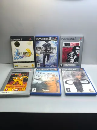 Se venden 6 videojuegos para PlayStation 2. Los juegos tienen los típicos arañazos de jugar pero funciona perfectamente - Final Fantasy X - Call of Duty: World at War - Final Fronts - True Crime: Streets of LA - State of Emergency - Pacific Warriors - [Título no legible]