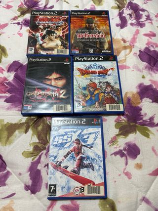 Conjunto de cinco videojuegos para PlayStation 2. - Tekken 5 - Return to Castle Wolfenstein: Operation Resurrection - Onimusha 2: Samurai's Destiny - Dragon Quest: El - SSX 3